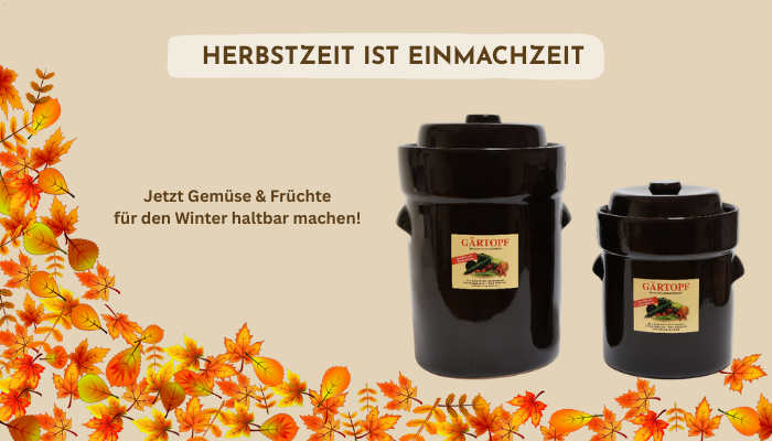 Im Herbst ist Hochsaison für das Einmachen. Verwandeln Sie nach Ihren Vorlieben im Gärtopf gesundes Gemüse in köstliche Vorräte - ganz und gar ohne Konservierungsstoffe und auf natürliche Basis.