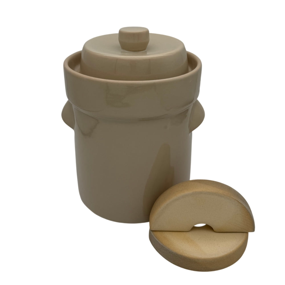 Gesund ernähren – Gemüse im Gärtopf gären: Mit diesem Gärtopf in der trendigen Farbe "Latte" erwerben Sie ein hochwertiges Steinzeugprodukt – zum Einmachen und Fermentieren aller Gemüsearten. Erhältlich in drei Größen.